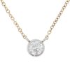 This necklace is made in 14k yellow and 14k white gold. It features a .31 carat round diamond set in a trapeze style bezel. This is item DLN1323